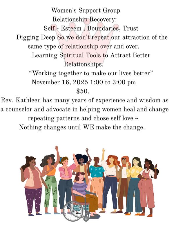 Rev. Kathleen has many years of experience and wisdom as a counselor and advocate in helping women heal and change repeating patterns and chose self love ~